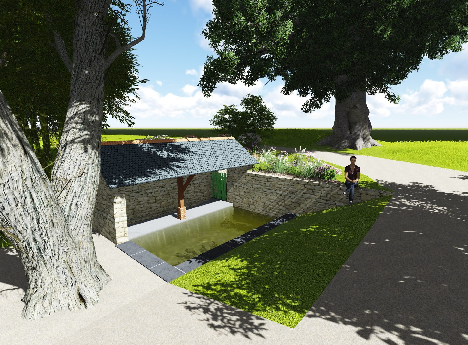 Lavoir après restauration et plantations