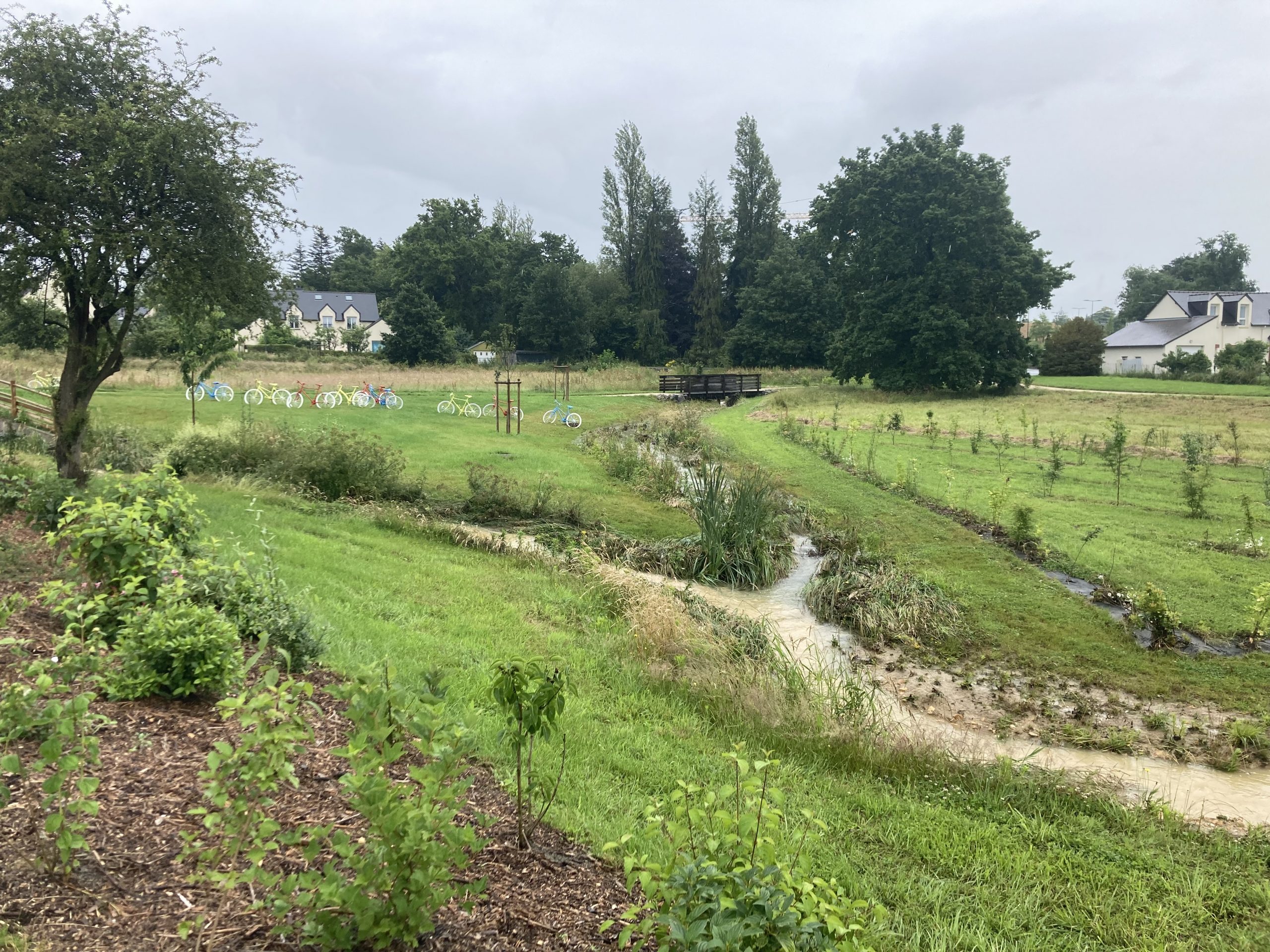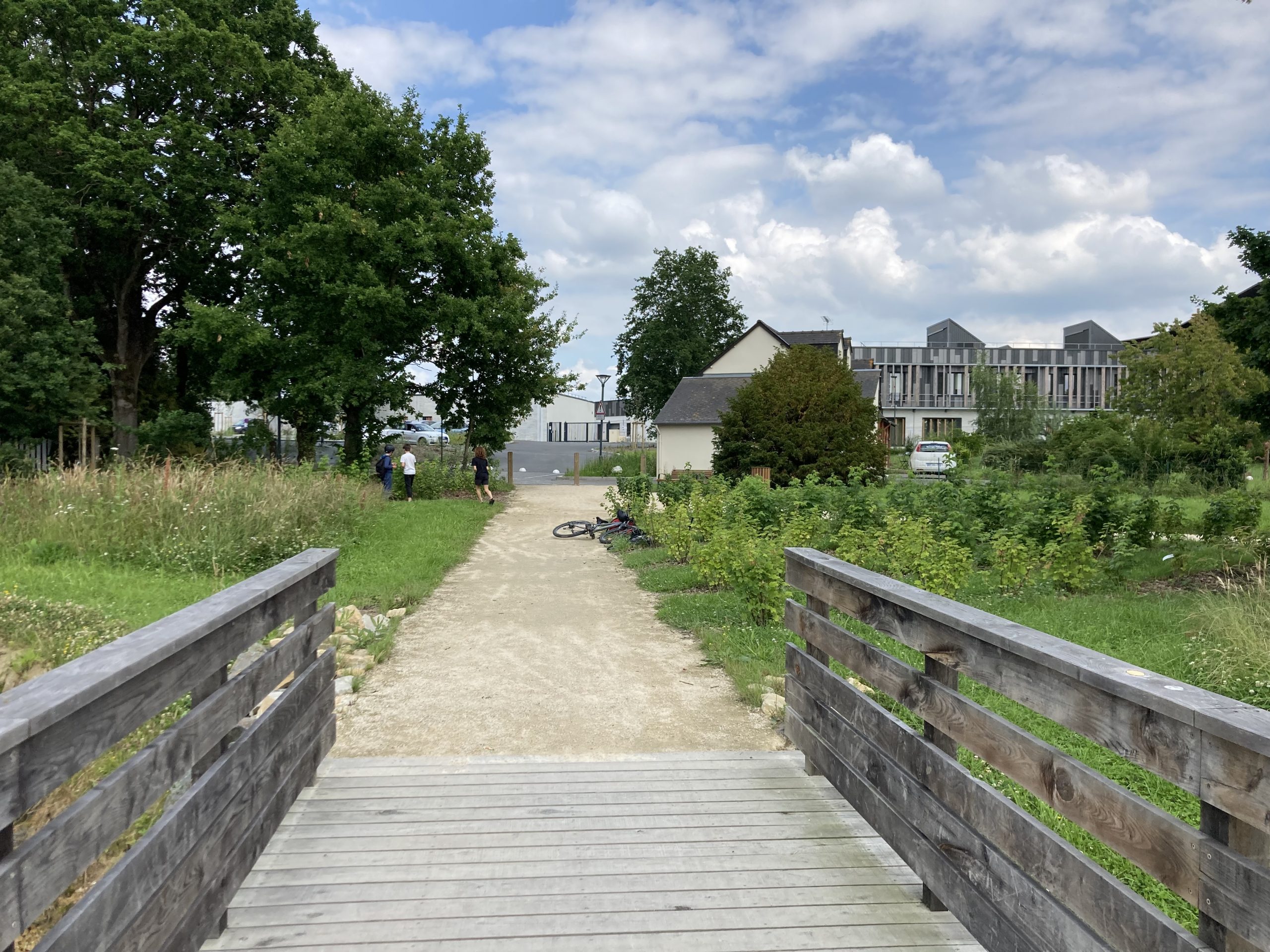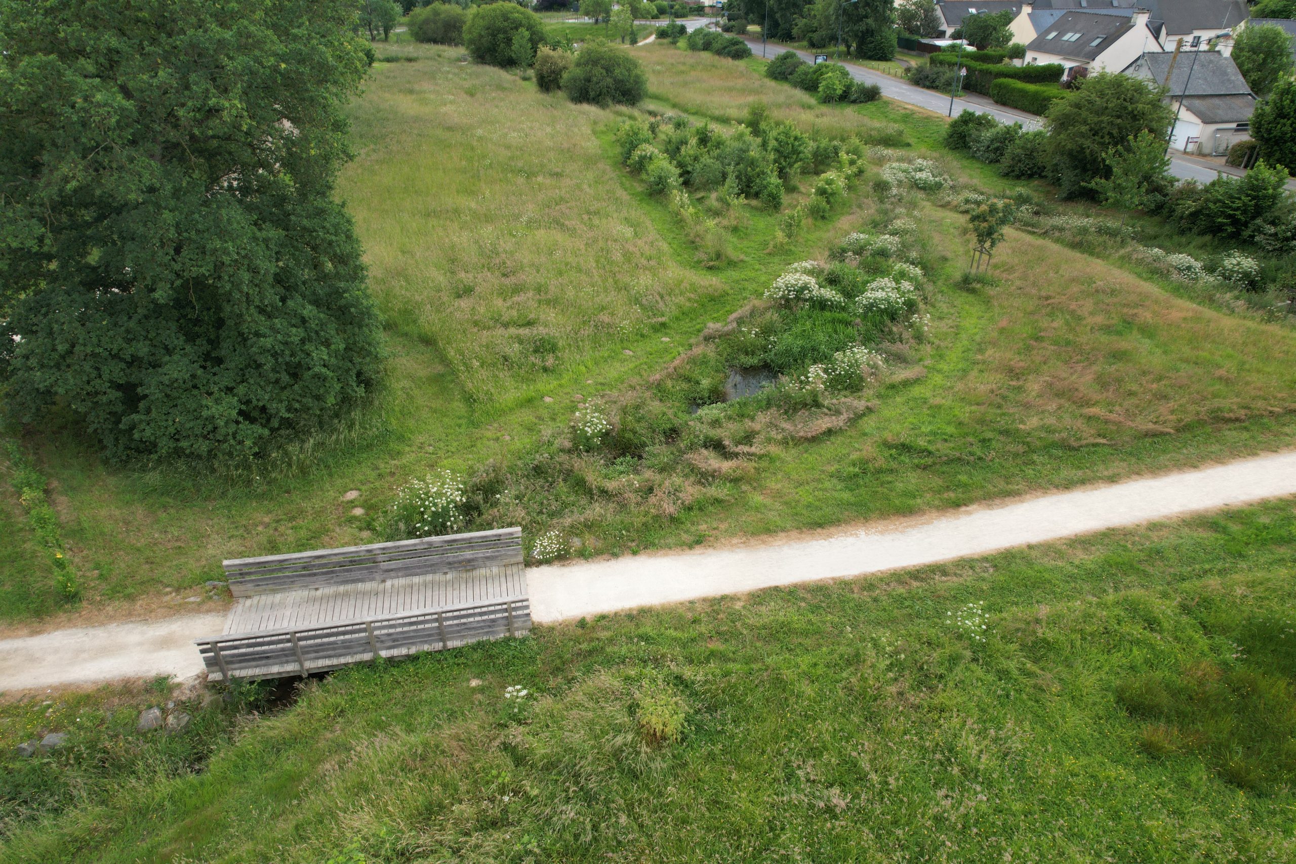Passerelle sur le ruisseau renaturé