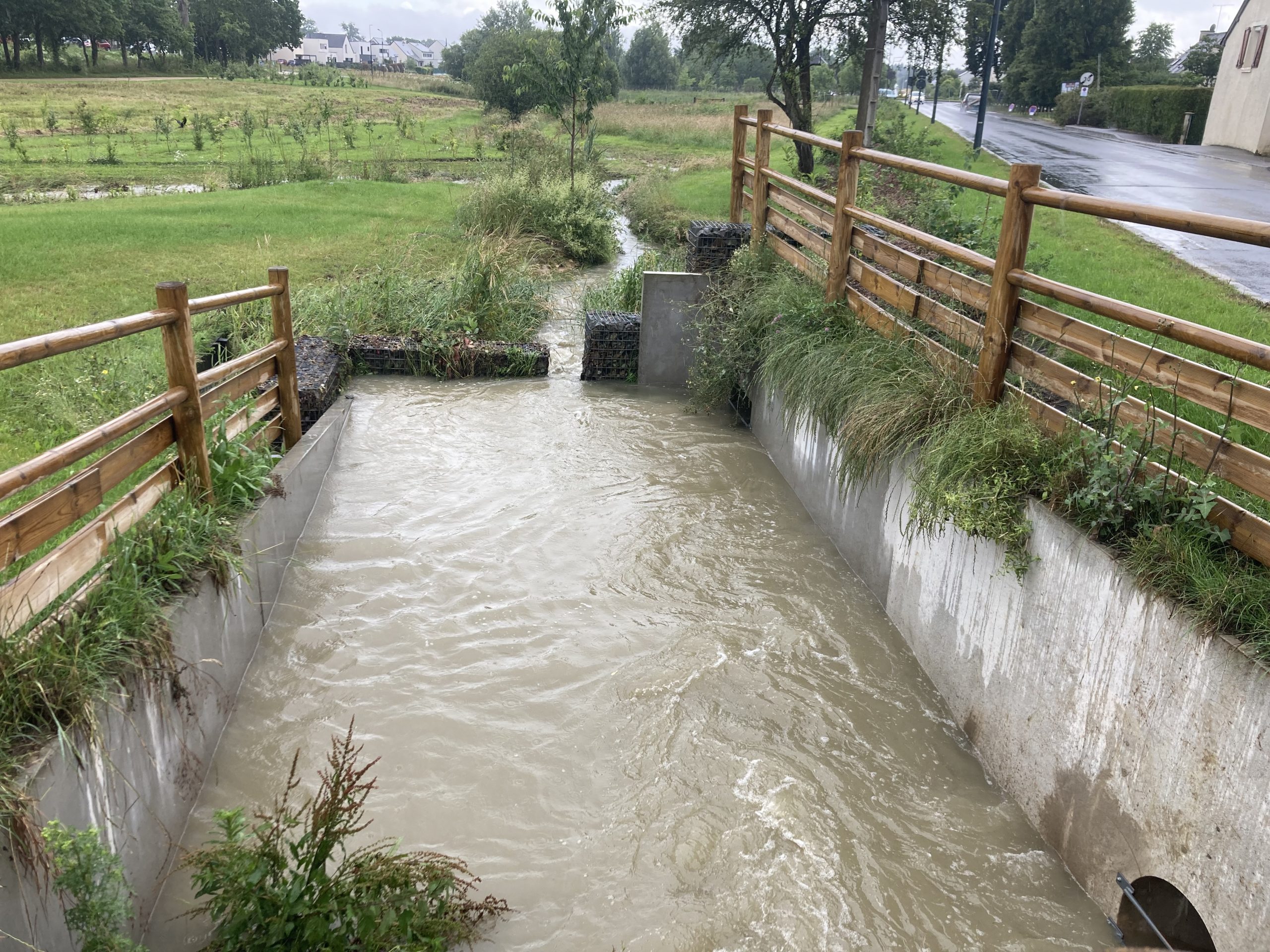 Ouvrage de régulation lors d'un orage estival visant à casser les débits