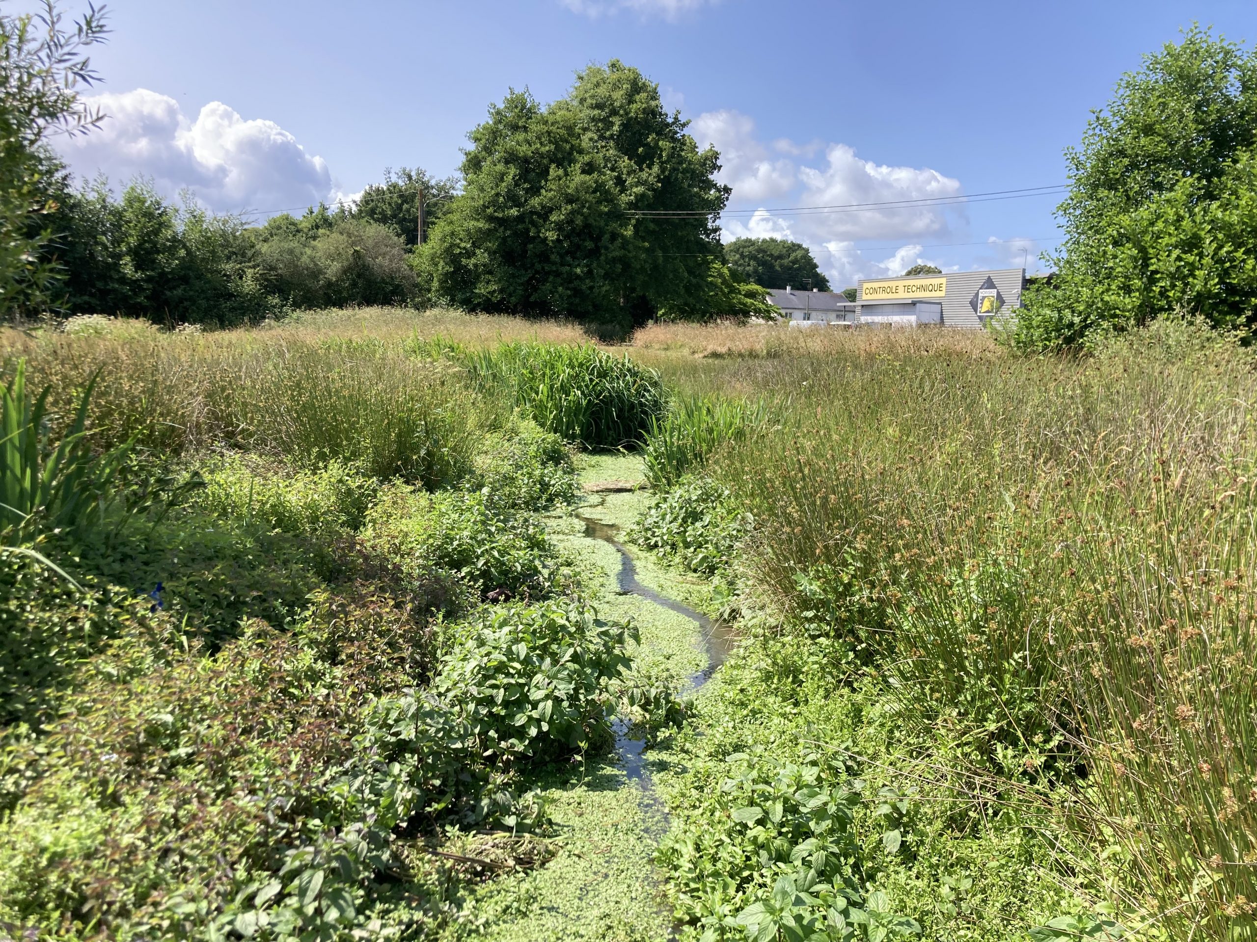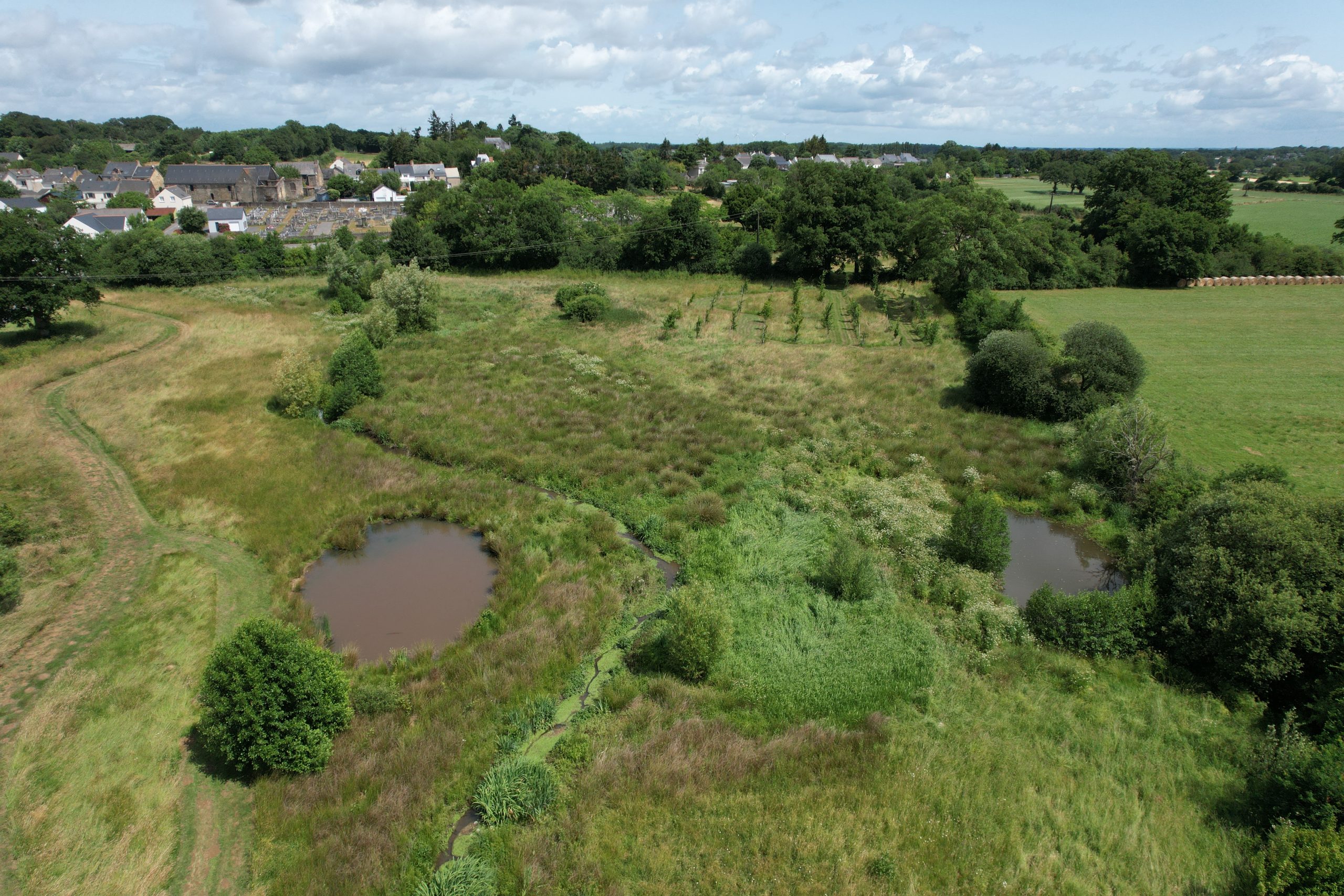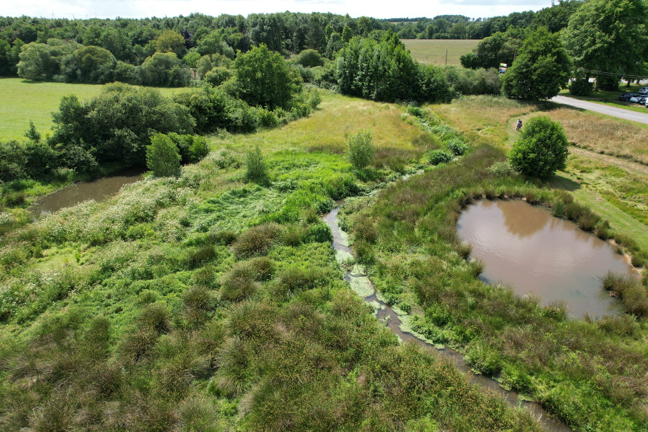 Vue en vol d'oiseau vers l'aval du ruisseau de Cétrais - Juin 2025