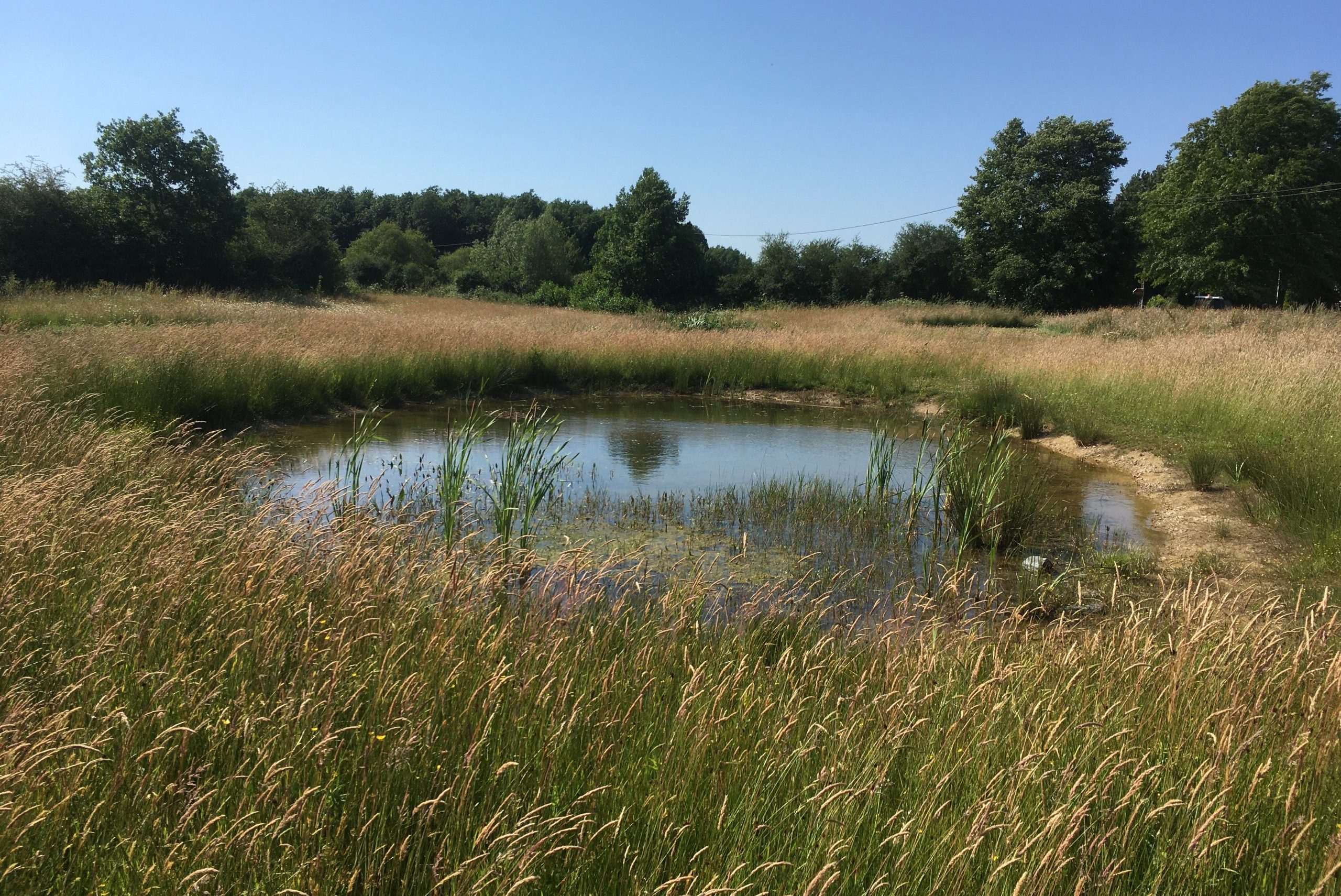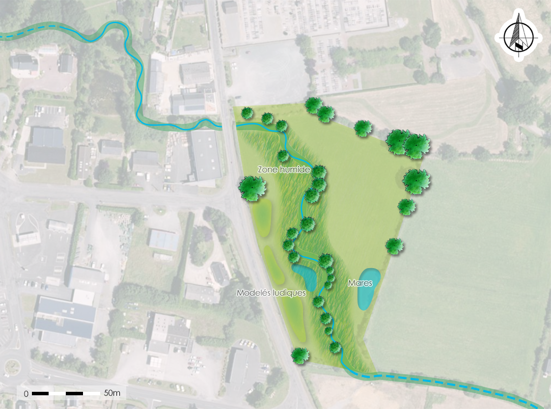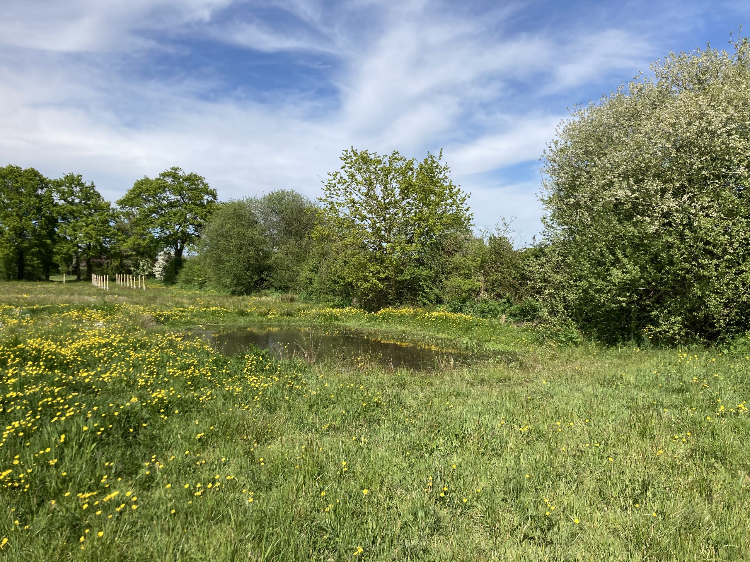 Vue en vol d'oiseau vers l'aval du ruisseau de Cétrais - Juin 2025
