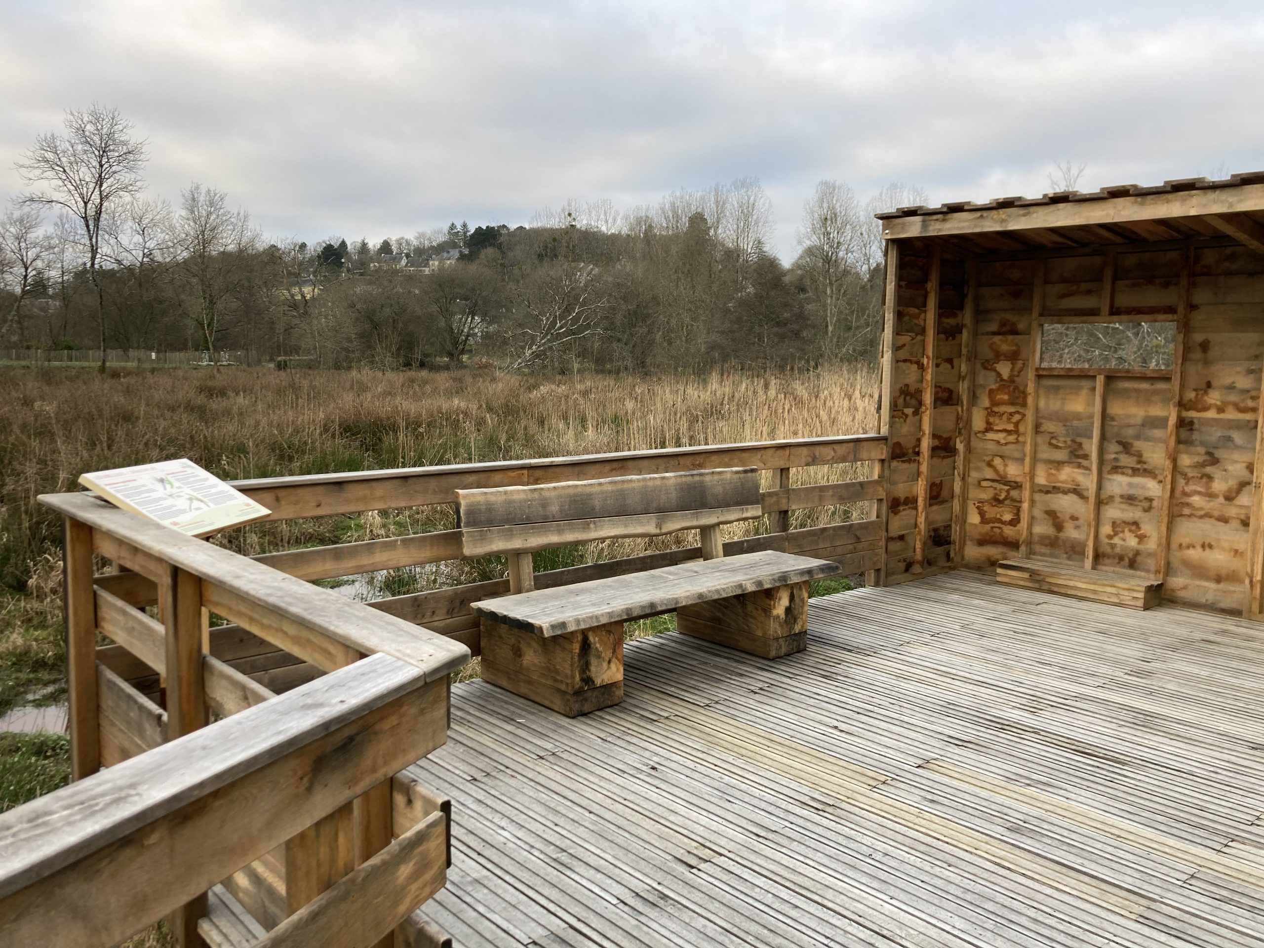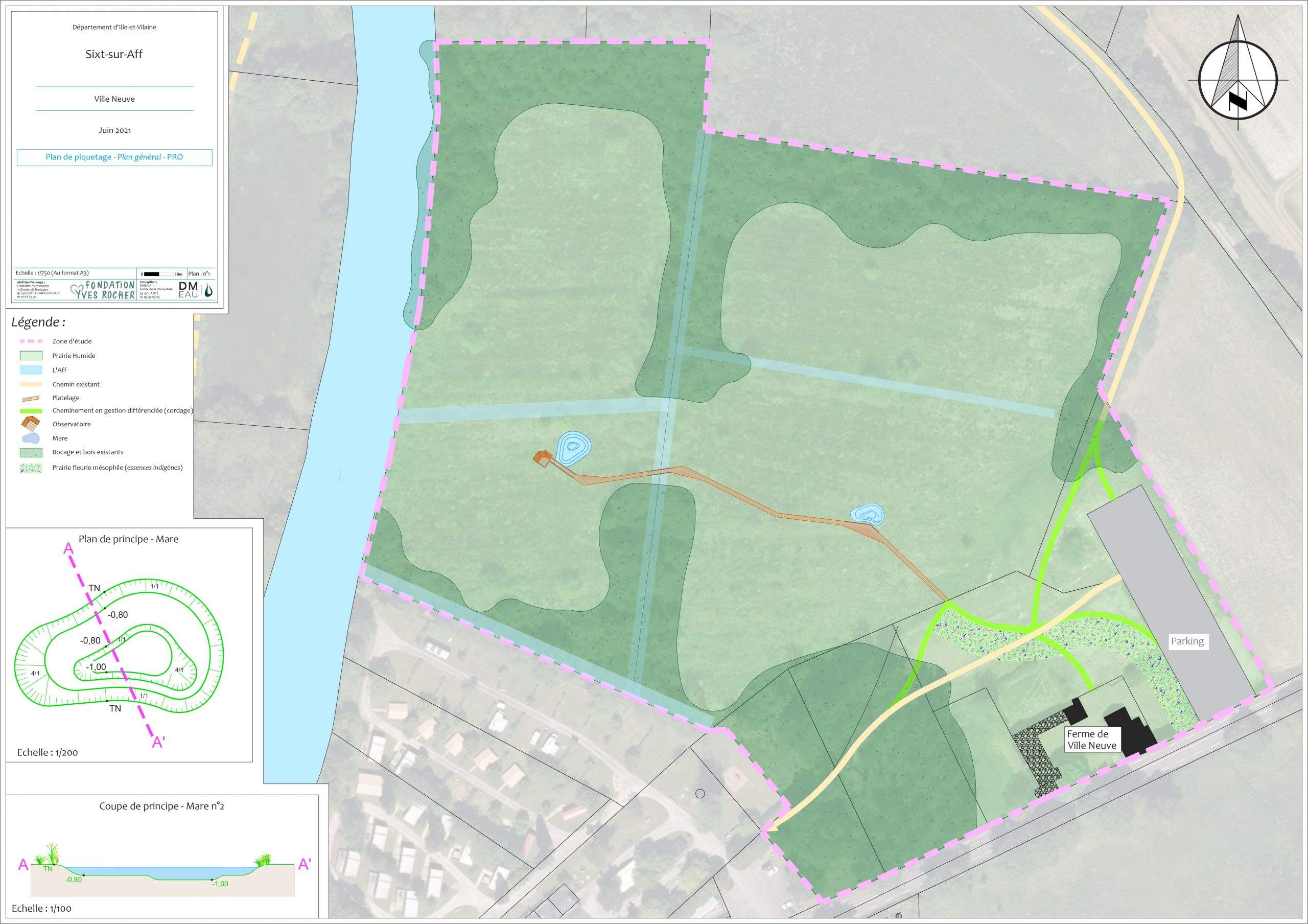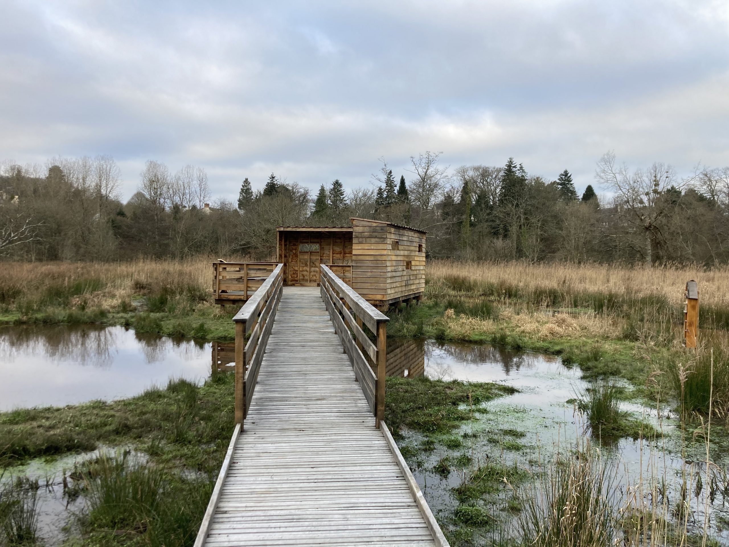 Vue en vol d'oiseau de la prairie humide avec le platelage vers l'Aff - Mai 2022